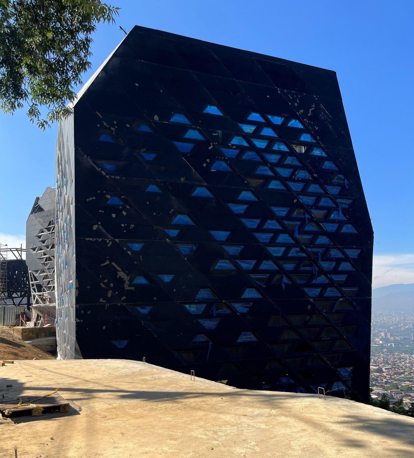 La fachada de las tres edificaciones que conforman el Centro Cultural se diseñó con piezas trapezoidales de GRC, basadas en distintas diagonales, estas piezas tenían el propósito de dar profundidad a las ventanas. Se optó por un color oscuro para que, visto desde la ciudad, se asemejaran a tres rocas en la montaña. Además, se prefirieron piezas de gran tamaño para reducir la cantidad de juntas, minimizando así el riesgo de filtraciones.